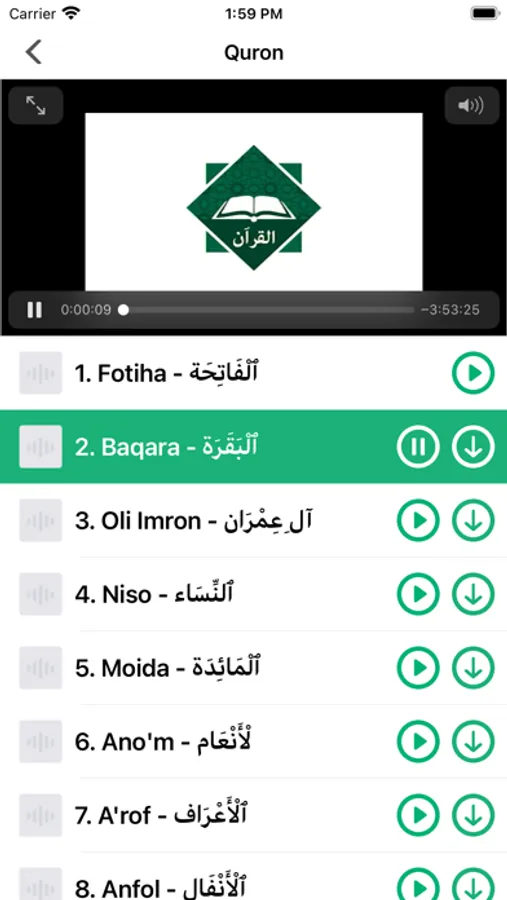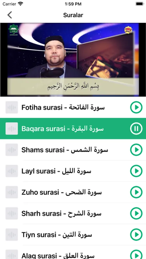 Ilova namoz vaqtlarini ko'rsatish, kompas orqali qiblani ko'rsatish, shayx Alijon qori tomonidan "Muallimi soniy" kitobi asosida tayyorlangan videodarsliklarni ko'rish, Qur'on tilovati va zikrlarni tinglash imkonini beradi.