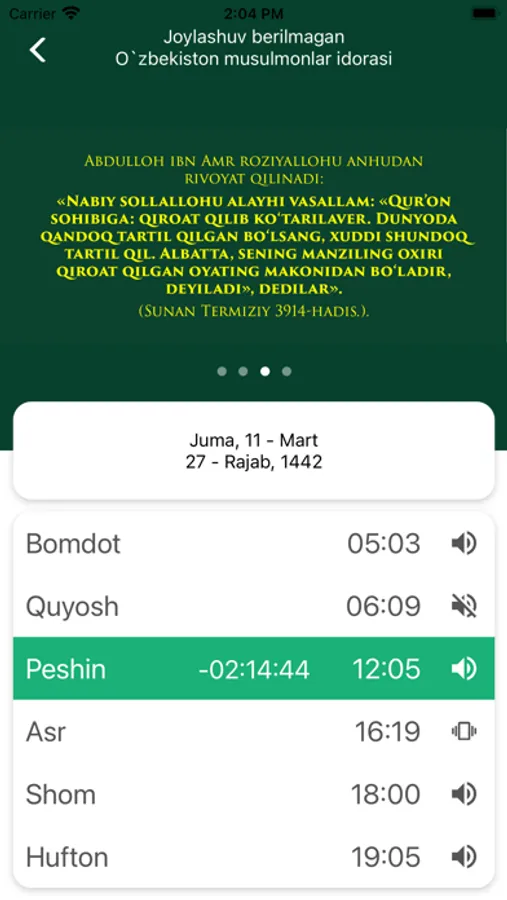 2. Namoz vaqtlarini foydalanuvchiga qulay tarzda eslatib turish.