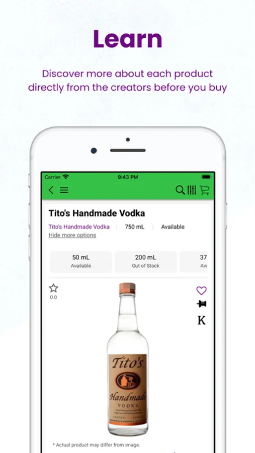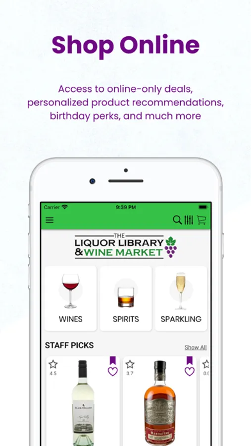 With the App you can browse for the wines & spirits available in the store, and also order a delivery or pickup.