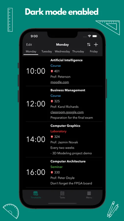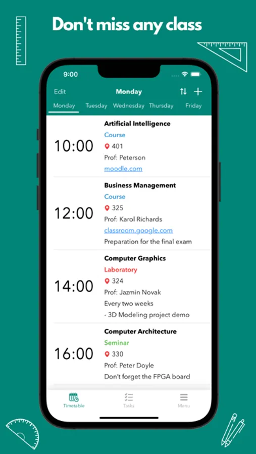 Pocket Timetable is the perfect tool for school, college or university. Keep track of your classes and manage your schedule with ease. Get notified before the start of any course.