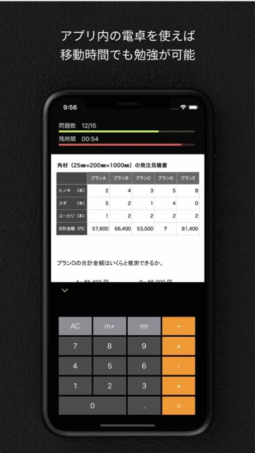出題傾向を分析して質の高い問題を用意し、さらに本番試験を意識した受験環境をアプリで実現しました。