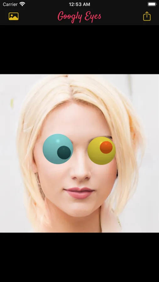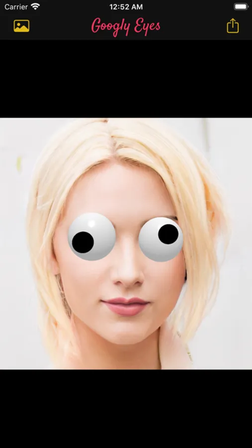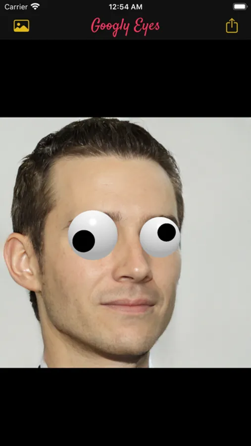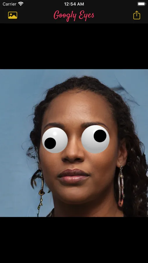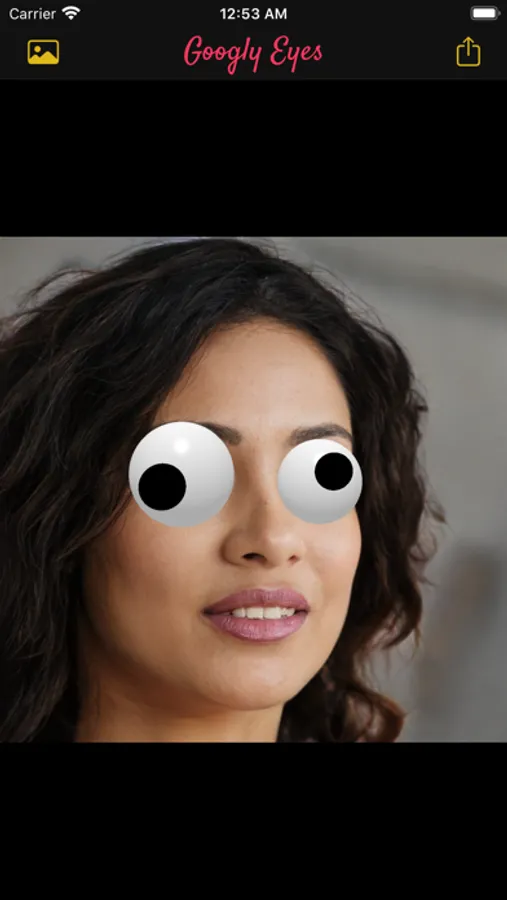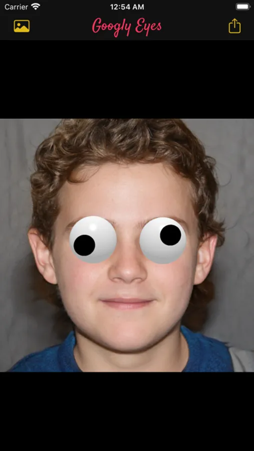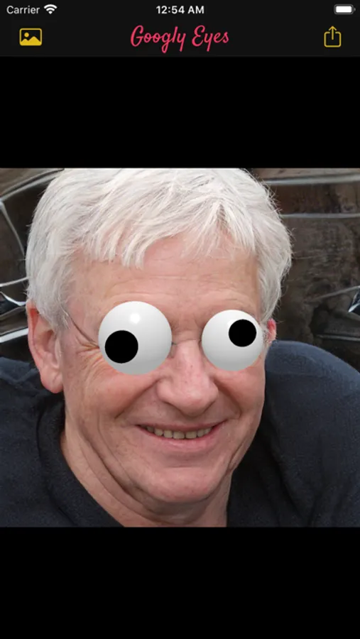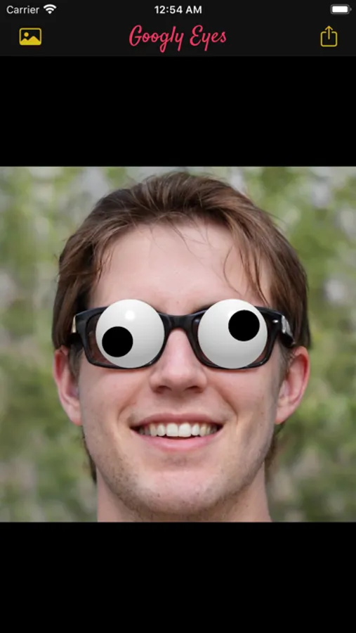 * Choose any photo (or take a photo) and the app will automatically add googly eyes to it. If the app recognizes faces in your photo, it will place googly eyes over every eye it detects.
