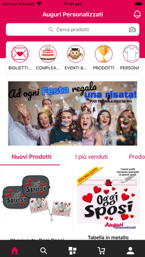 Troverai centinaia di Biglietti Augurali, Bicchieri, Targhe commemorative, Cappellini con scritte originali, T-Shirts stampate, Cuscini, Fasce premio e ....