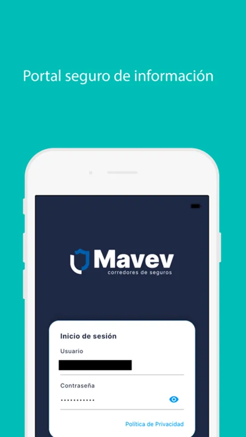 Aplicación informativa y de gestión de pólizas de seguro para clientes Mavev.