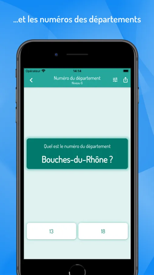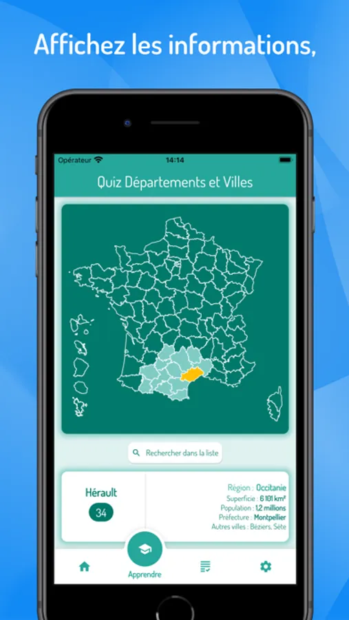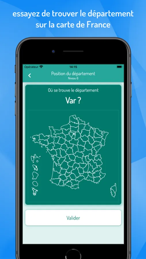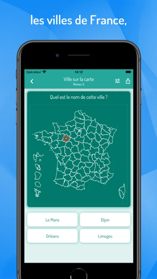 In this geographic game, you will learn to know the names, numbers, new regions and prefectures of all the French departments as well as know how to identify them on the map of France. The quiz will also teach you how to find the largest French cities on the map and identify their departments and regions.