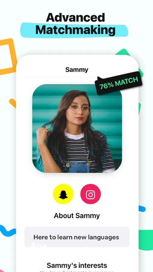 Swipe through a ton of new faces. Check out each person's detailed profile to decide if you think they could be your new friend! You both love Volleyball? Say hi! This guy hates dancing? No problem, swipe left! On Peeps, you'll get a chance to meet so many people you have things in common with.