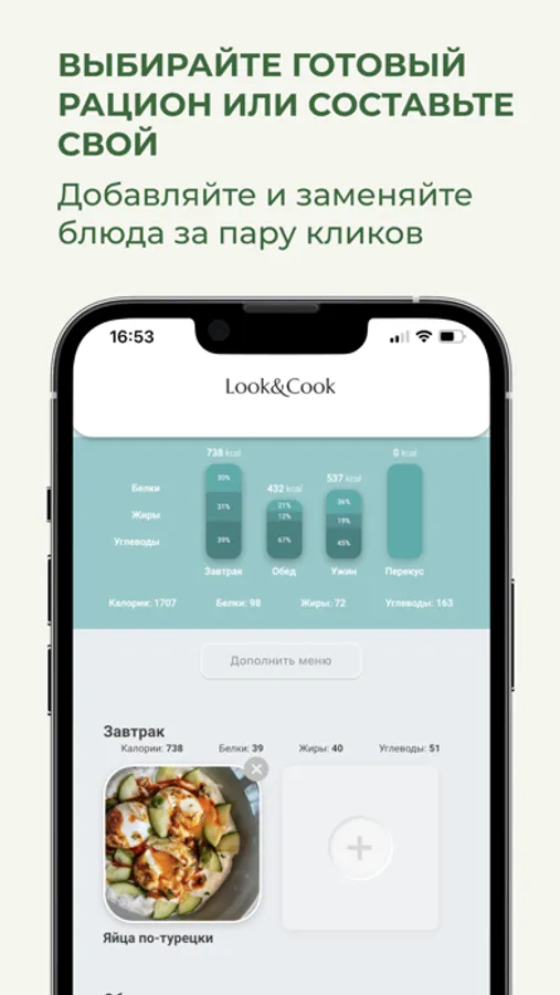 Look & Cook больше, чем сборник авторских рецептов от фудблогера @look_whaticook. Это ваш помощник в планировании ежедневного питания с пошаговым приготовлением сбалансированных по БЖУ блюд.