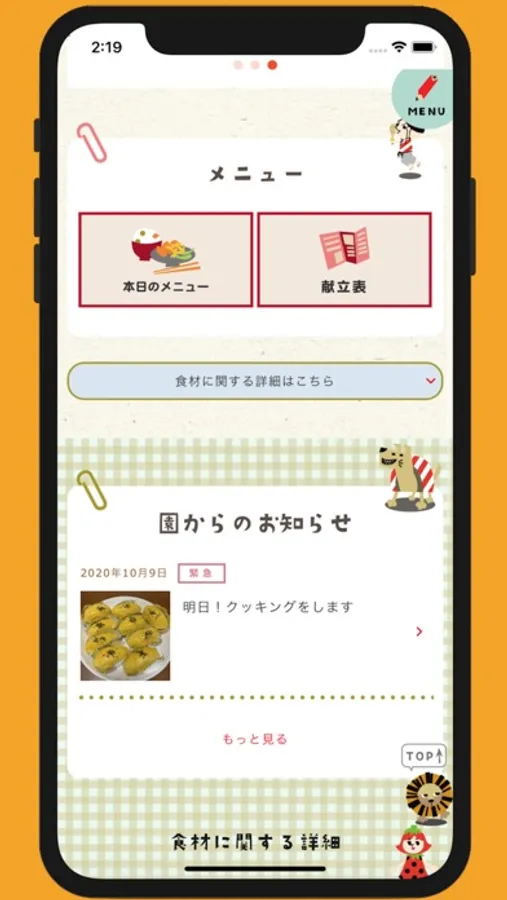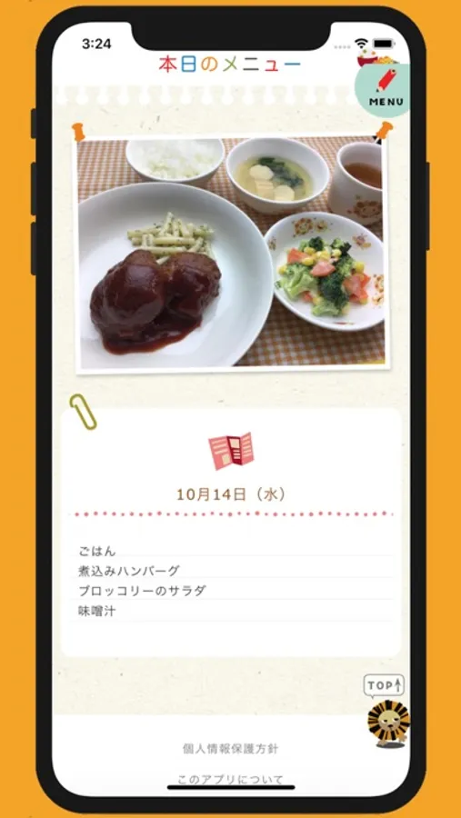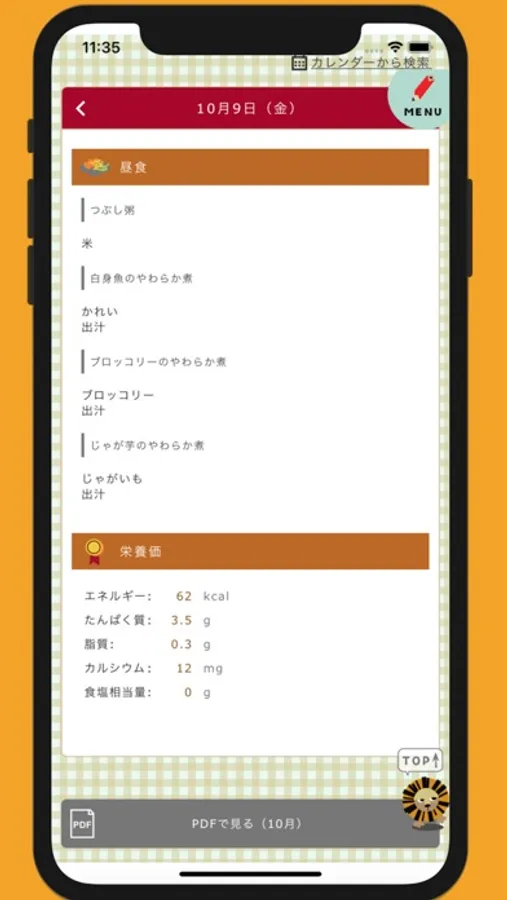 保護者の方は、このアプリを通じて、事前にチェックしていただいた対応食献立をこの