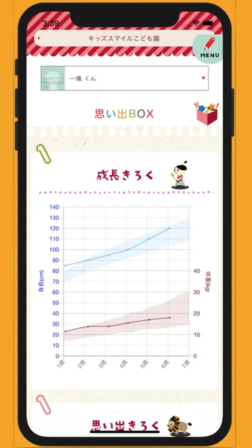 お子様の体重を記録し、成長曲線としてご確認いただけます。