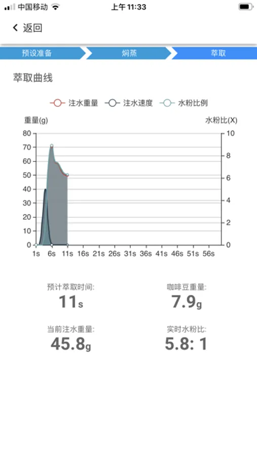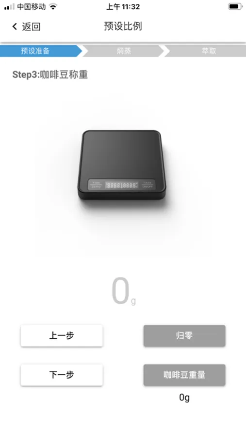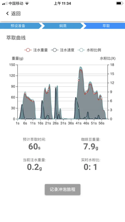 Step2:设置冲泡数据,包括研磨程度,温度,焖蒸时间,萃取时间,水粉比