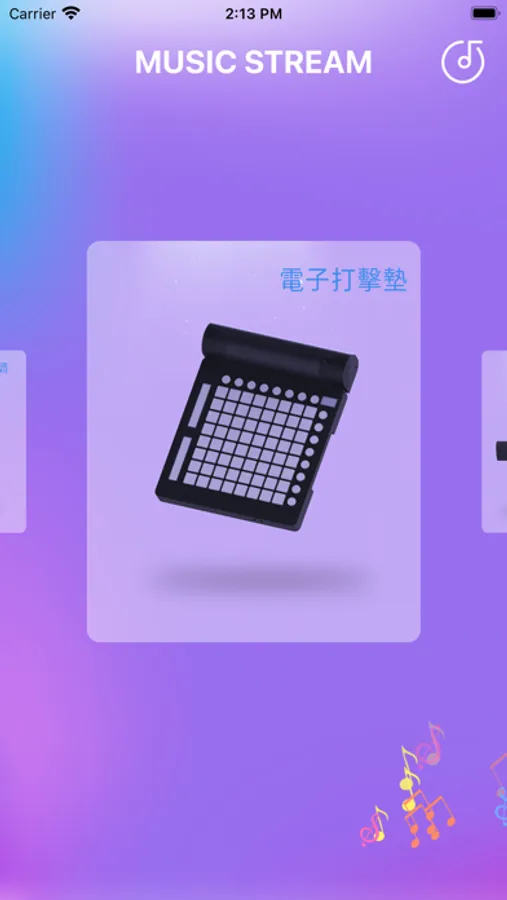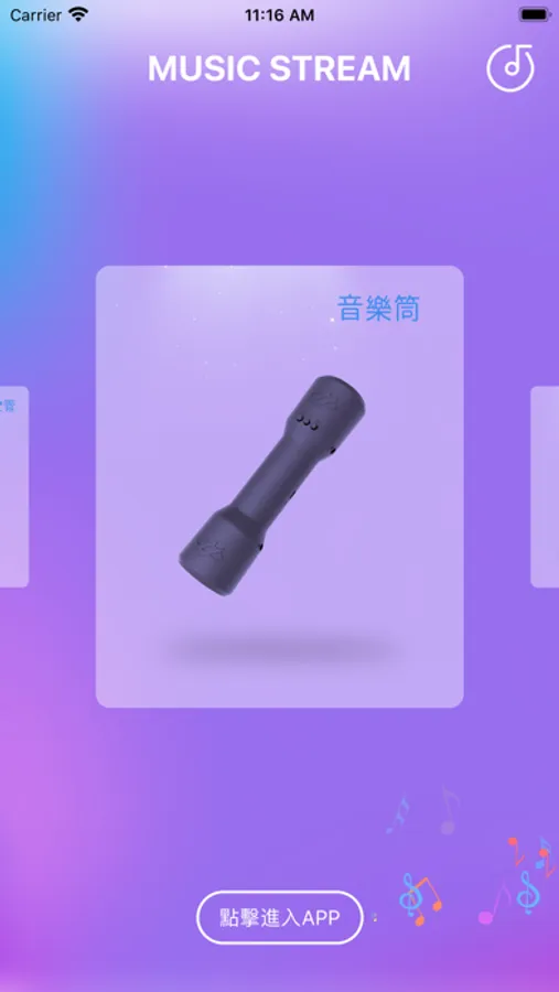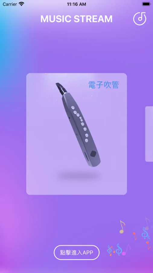 1、該APP主要是做Holtek電子吹管、音樂筒、電子打擊墊、MIDI音箱4種產品整合的圖片展示推广,搭配悦耳的背景音乐