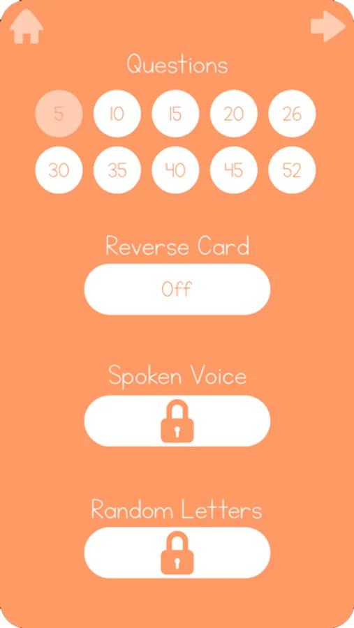 - Card Mode- ability to select between the following modes, Learn Letters, Learn Letter Sounds, Learn Letter and Sounds, Learn Vowel Sounds, Learn Digraphs, Quiz Letters, Quiz Letter Sounds, Quiz Vowel Sounds, Quiz Digraphs