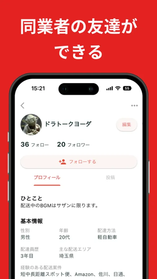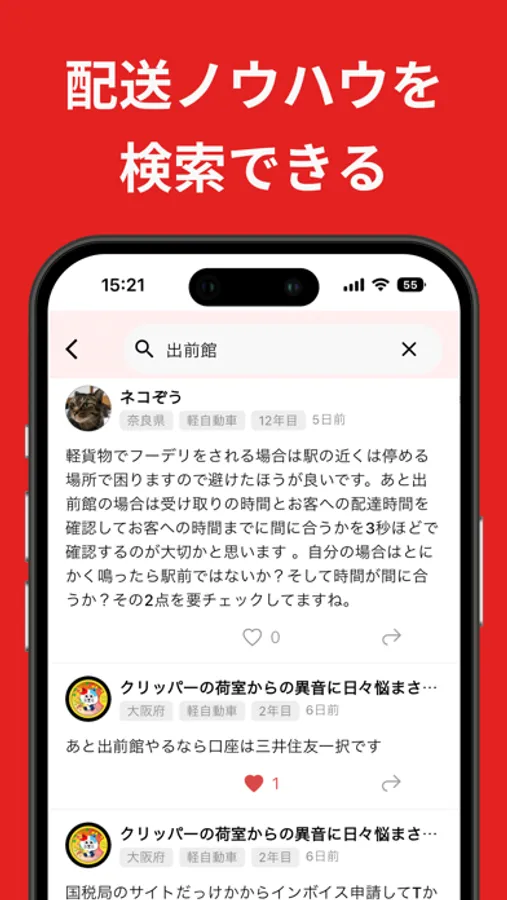 日本で唯一の配達員に特化したSNSで、毎日配達に関するトピックや相談事がタイムラインに流れ、全国の配達員により活発なコミュニケーションがなされています。