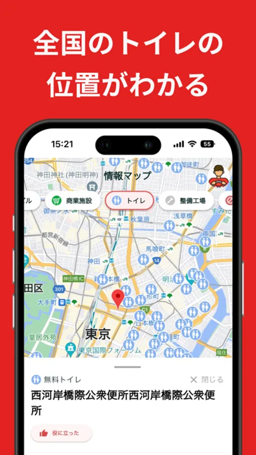 ・面倒で手間だったトイレ探しの時間がなくなります。