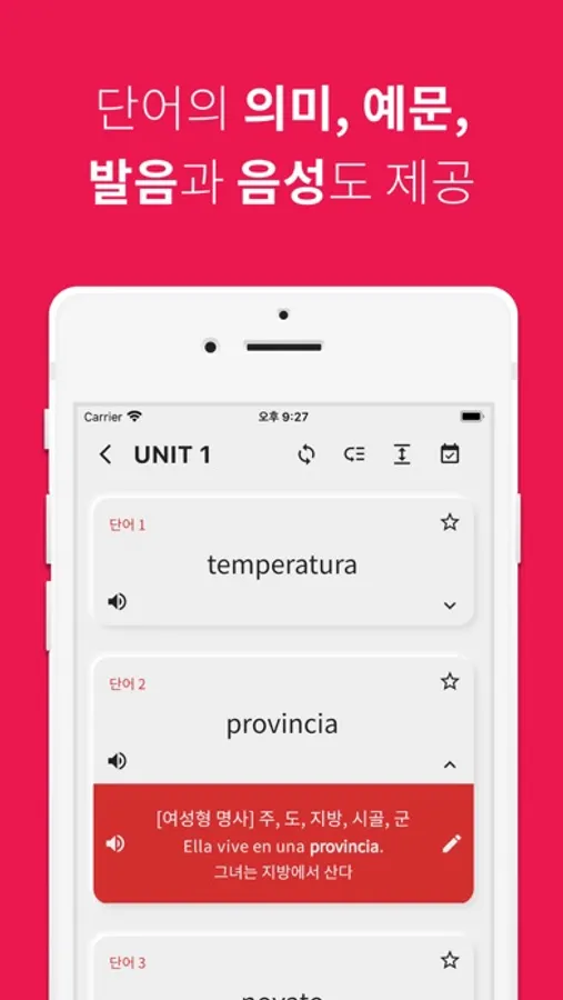 걱정하지마세요. 스페인어 단어는 여러분께 스페인어 단어 발음을 음성으로 지원하고 있습니다.