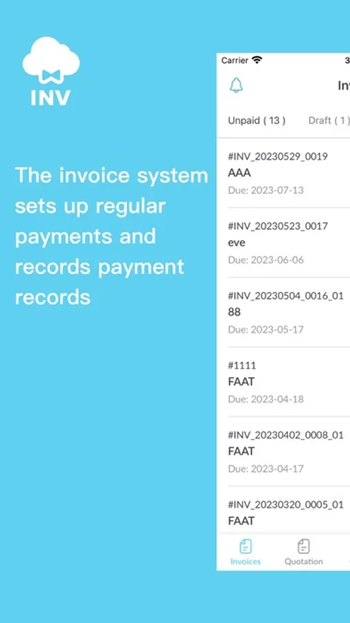 Easy Billing Billing Management Program is a company-operated billing tool. Employees can add invoices and quotations to customers through the mobile app. The procedure is simple and easy to use. In addition, all quotations and invoices are stored in the cloud company system.