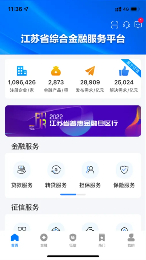 江苏省综合金融服务平台是一款为中小微企业、金融机构、政府部门等展示金融服务、征信服务、惠企政策的综合服务APP。