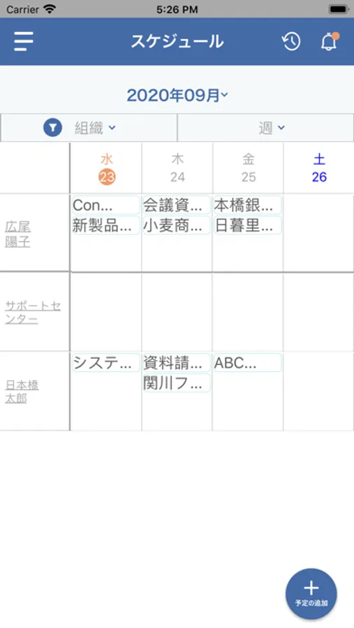 J-MOTTOグループウェアのスケジュールを表示・登録できます。予定の空き状況を確認しながらスムーズに日程調整ができます。