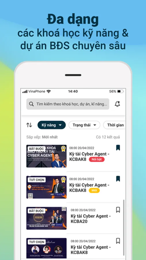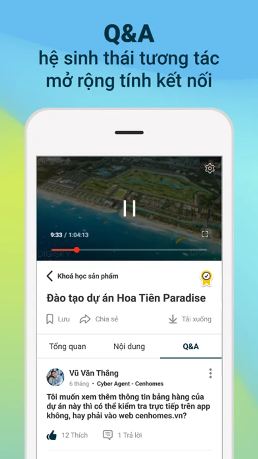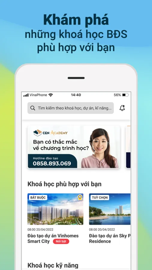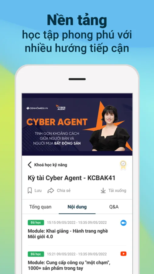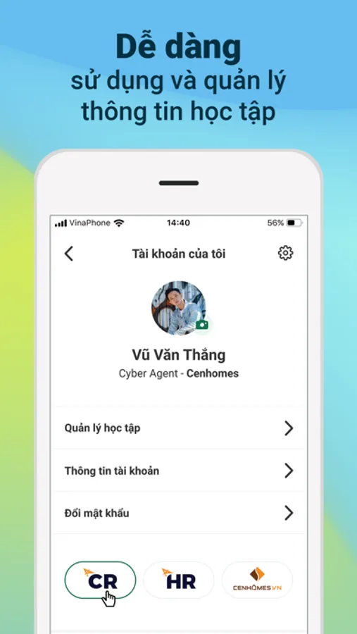 Ứng dụng đào tạo CenAcademy hô trỡ người dùng có thể học tập trên thiết bị di động. Gồm các chức năng: