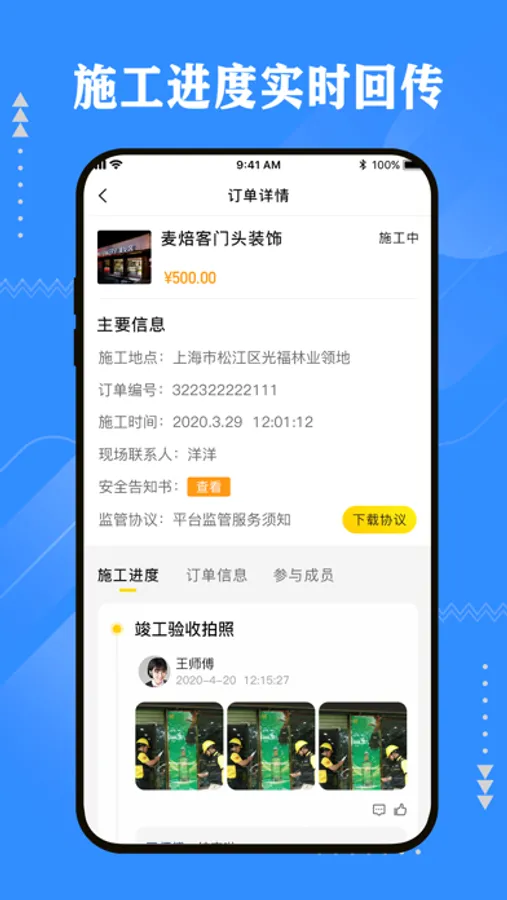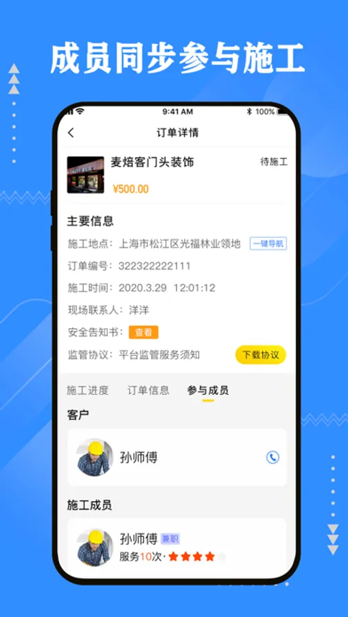 构建全国安装售后服网络,深度整合闲散安装师傅,标准规范化培训。构建同一品牌形象在超人云监工,用户可随时随地找到专业靠谱的安装师