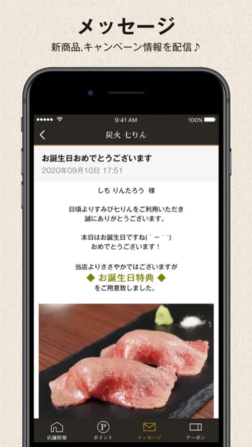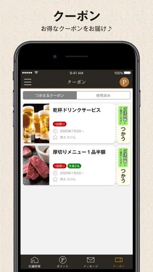 キャンペーンや新商品のご案内など、お店からお得な情報をお届けします。