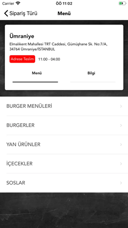 * Menümüzü inceleyin.