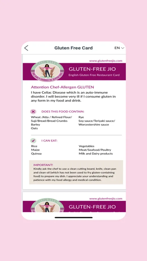 • Review your gluten-free card in any regional Indian language.