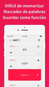 - Proporciona una función para revisar todas las palabras coreanas por parte, unidad y