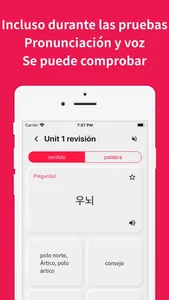 No te preocupes. Korean Word le proporciona soporte de voz para la pronunciación de palabras coreanas.
