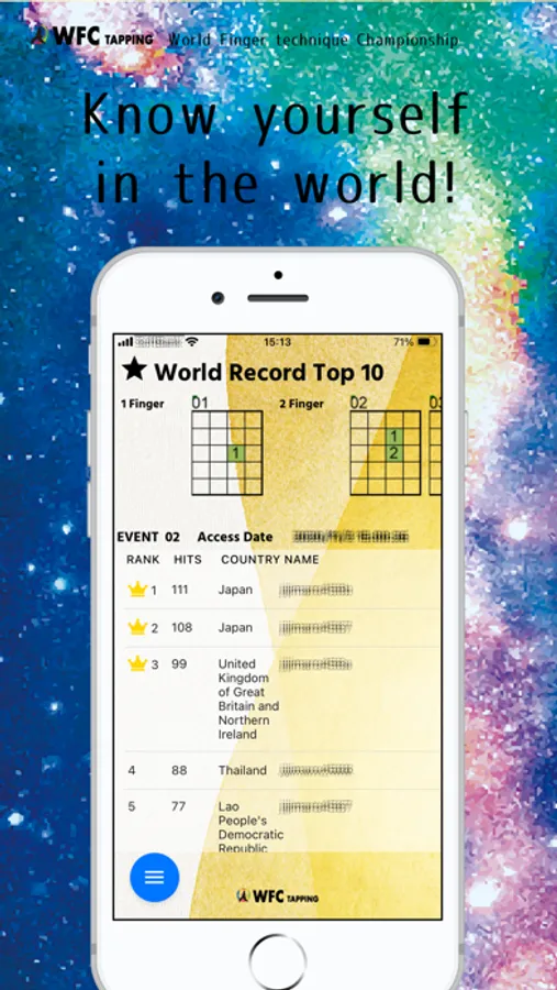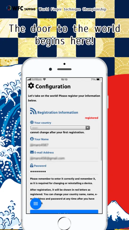 Country, name, e-mail address, and password can be set to show the world ranking.