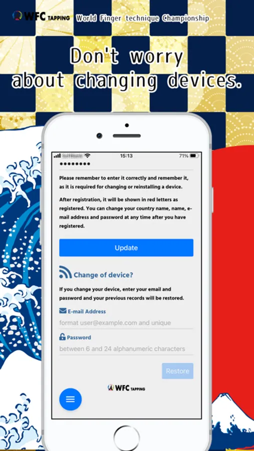 You can set your e-mail address and password when you change models or reinstall your device, so you can restore your competition record.