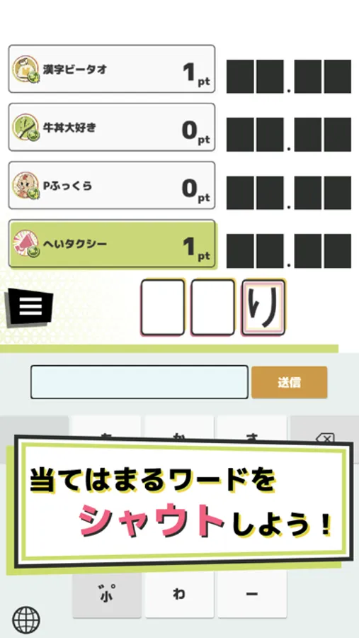 空欄に当てはまる言葉をさきに思いついたら勝利!