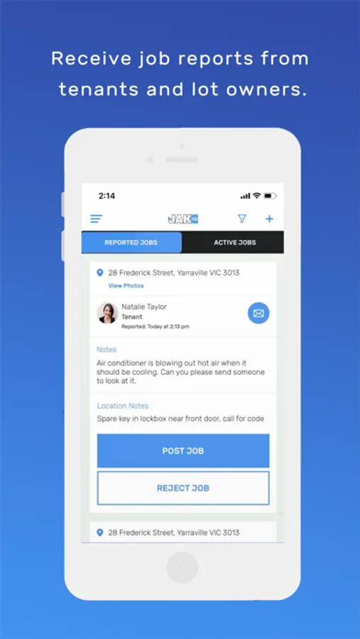 * Quickly and easily send job requests to your property/strata manager with images and a description to show what is required.