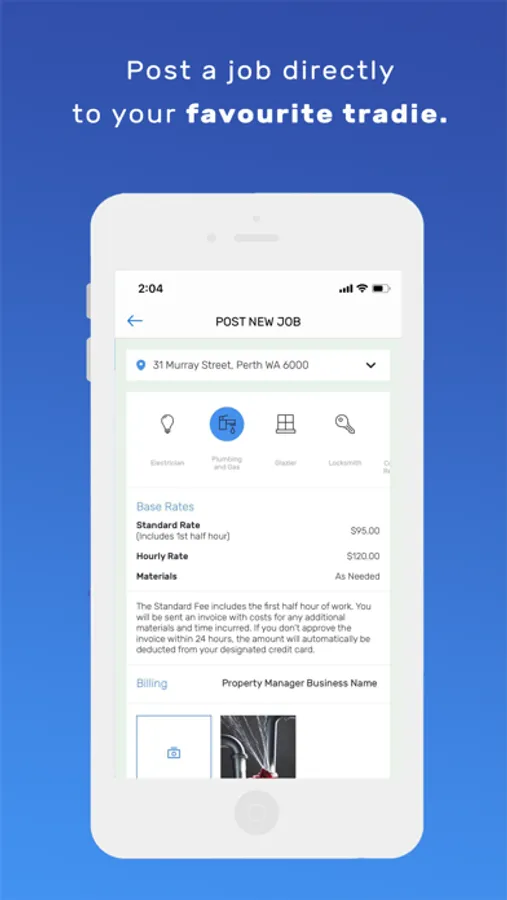 * Post a job directly to your favourite tradie or select from our database of qualified providers.