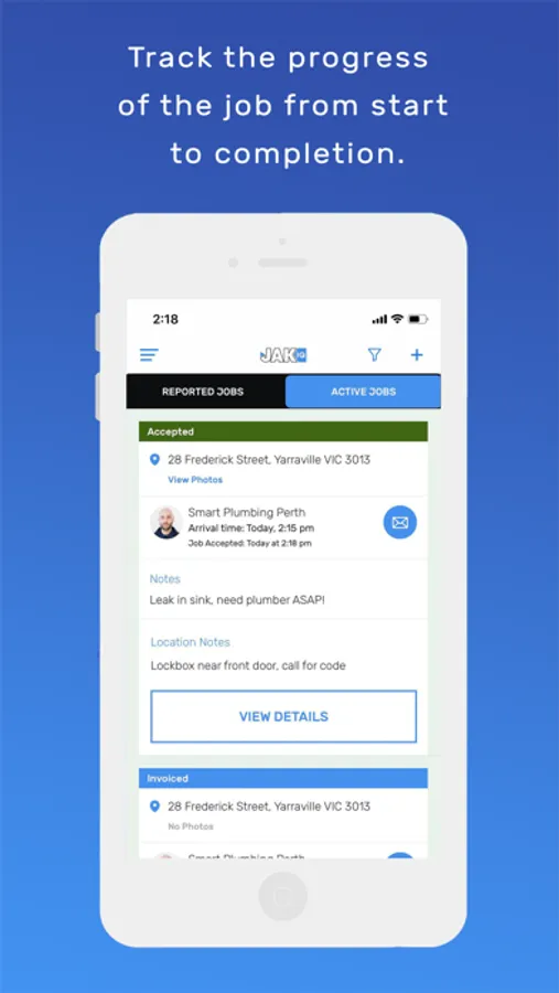 * Be notified of your tradies arrival time and track their progress from the start of the job to completion.