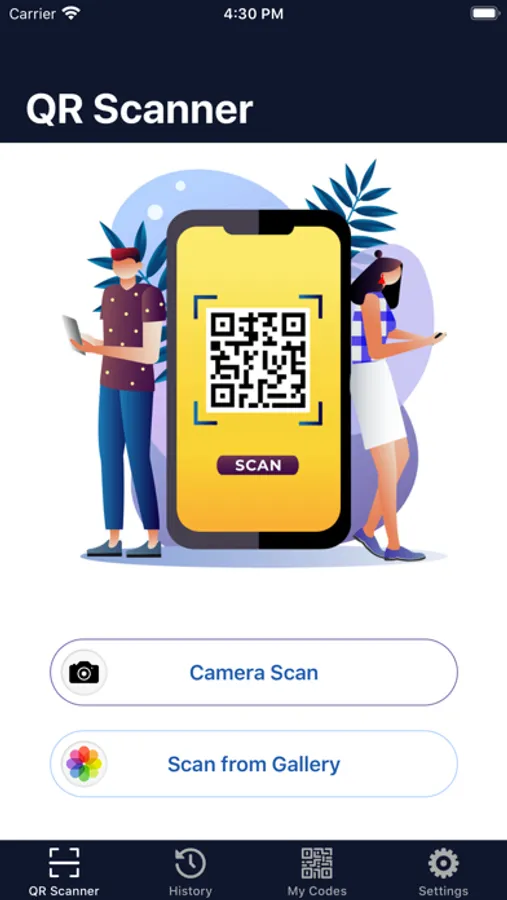You can use our security lock feature to protect your scans and personal codes from everyone. You can turn off this feature or change password any time in “Settings“ tab.