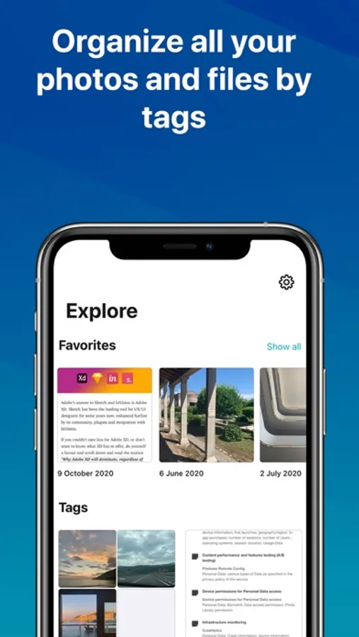 - Tag your content: organize your photos and files into categories using tags, find them immediately thanks to the "explore" feature or search for them using the "search" function