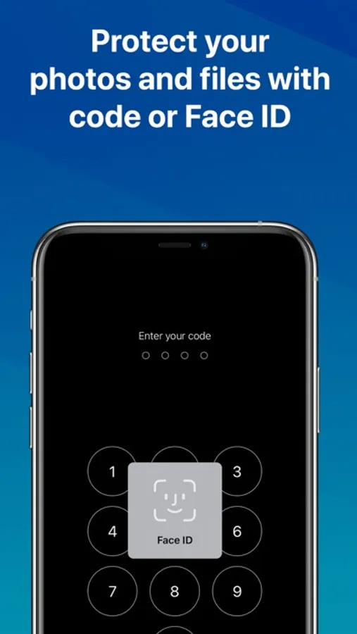 - Protect your photos and files: set a code or unlock the app using Face-ID or Touch-ID to protect your secret content