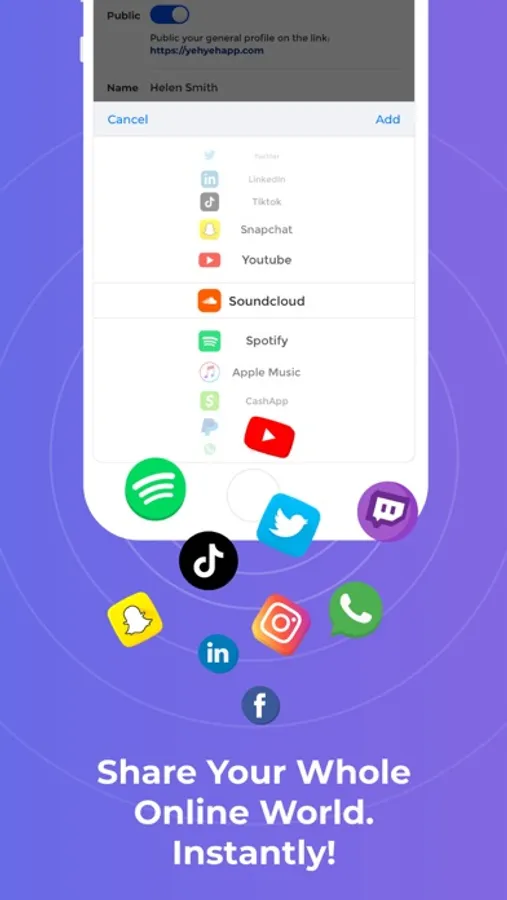 This is the next-level way to connect with people. Save your social media profiles and contact information in a personalized YehYeh profile and share it all in one tap. Do away with the chore of swapping contacts and trying to remember all your usernames with a simple tap of your phone.