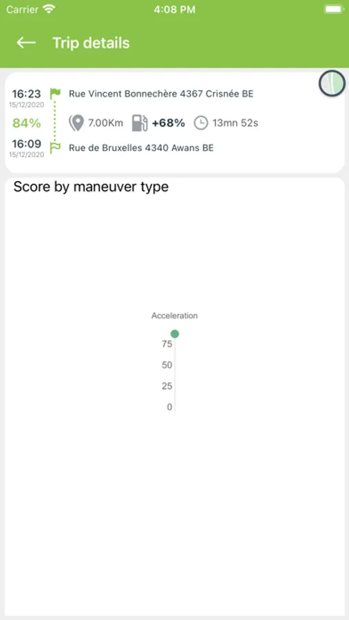 - Informations complémentaires de comportements influençant vos scores sur des périodes et sur le trajet.