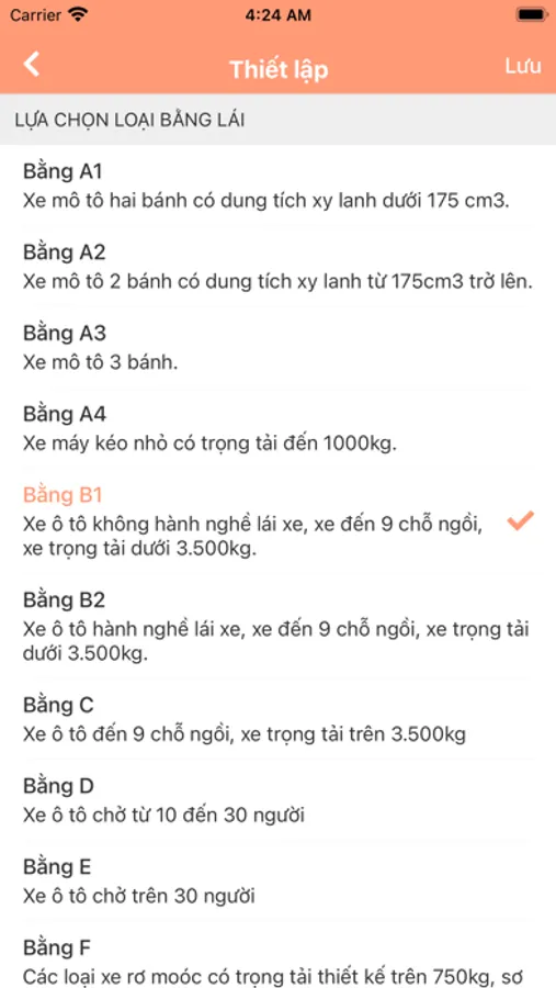 1. Hỗ trợ thi tất cả các loại bằng A1, A2, A3, A4, B1, B2, C, D, E, F