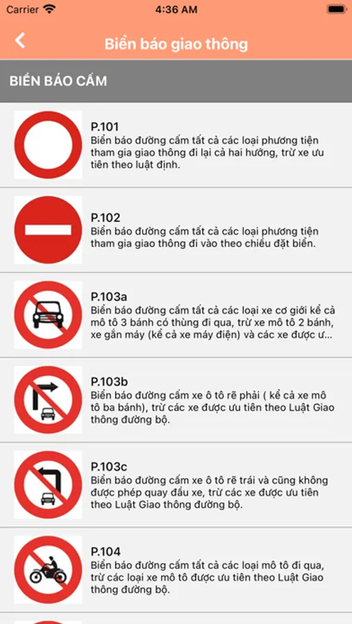 4. Danh sách tất cả các loại biển báo cùng với mô tả chi tiết.