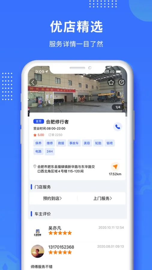 [预约维修]车主可通过赋界卡修APP预约维修,并可自主选择上门服务或到店服务