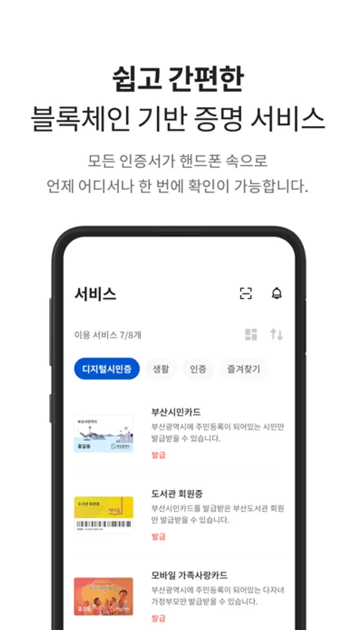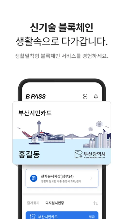 B PASS is an integrated mobile identification service that allows citizens to experience the block chain conveniently.
