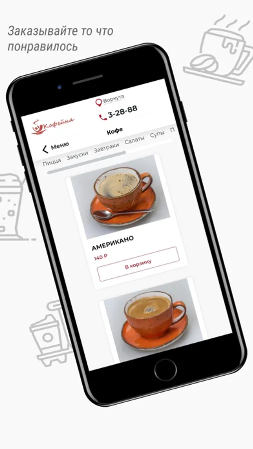Нашу пиццу, кондитерские изделия и выпечку, завтраки, супы, салаты, закуски, горячие блюда и напитки теперь вы можете заказать на доставку или самовывоз. Мы дорожим своей репутацией и вашим доверием, поэтому тщательно следим за качеством наших блюд. Благодаря этому приложению самое уютное кафе Воркуты распахнет свои двери и в вашем мобильном устройстве.
