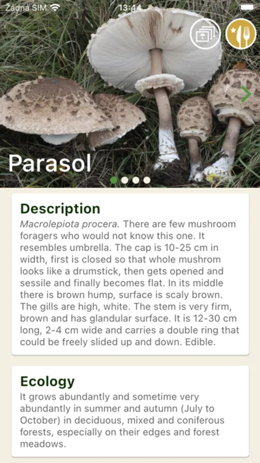 The application includes a detailed guide including the 210 most common types of mushrooms, with detailed descriptions and quality photos. There is also a key for identifying species according to visible signs. The biggest application specialty is the experimental function for optical recognition of mushrooms using neural network. Give it a shot!