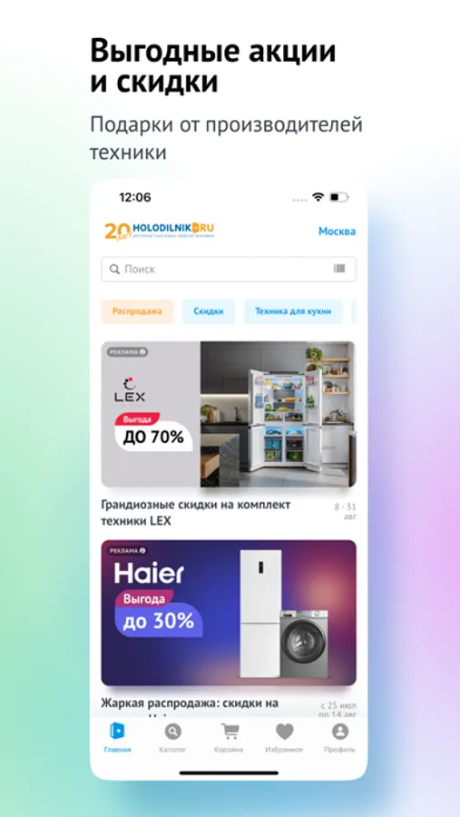 Скачайте приложение HOLODILNIK.RU, ознакомьтесь с нашим ассортиментом и начните делать покупки!