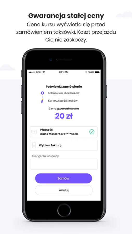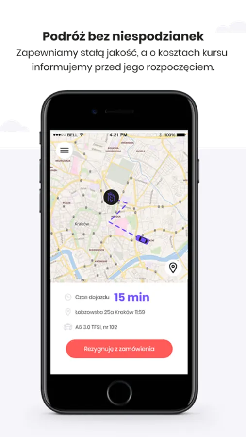 • minimalna liczba wymaganych danych osobowych – podajesz tylko numer telefonu i nick, który podasz, gdy odbierze Cię kierowca.