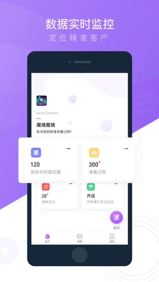 魔镜精灵APP是一个专注为小微商家提供商品管理,客户管理,订单管理,店铺管理的平台。平台依托于线上数据管理,为小微商家提供高效的管理工具,通过自己制定多媒体元素,更全面真实的展现自己,通过新增内容分享到朋友圈,高效整合资源更加精准的寻找客户群体,同时拓展人脉圈。