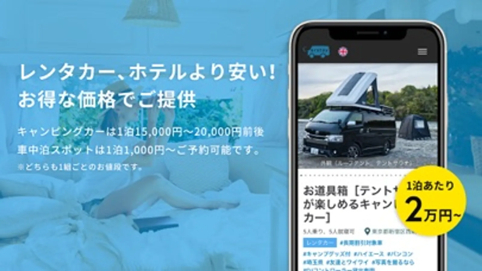 Carstayの審査を通過した、満足度の高いキャンピングカー・車中泊スポット・体験アクティビティを掲載しています。車も旅行先も、Carstayのアプリ1つで、予約することができます。